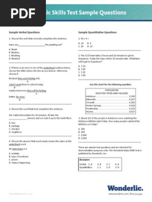 Pdf Wonderlic Basic Skills Test Practice Questions Verbal And Quantitative Skills Practice Exam